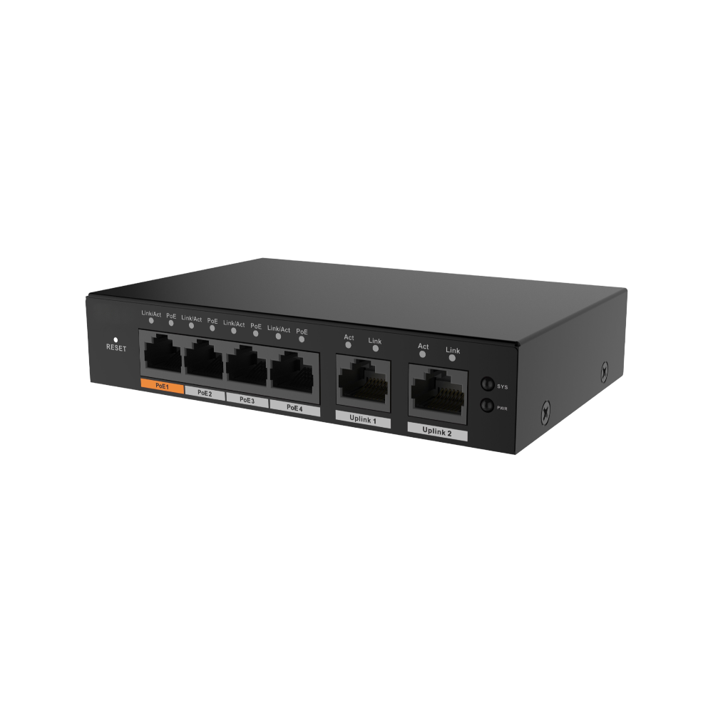 D-Tech DH-S4100-4GT2GT-60-C Cloud-Managed / Smart-Managed / Web-Managed 6-Port Gigabit Network PoE Switch with 4 * GbE PoE Ports + 2 * GbE Uplink Ports – 60W PoE Power