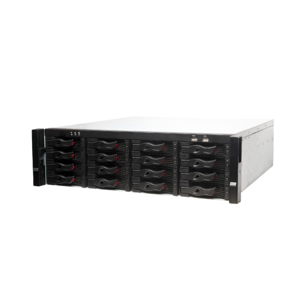 16 SATA III ports, up to 10 TB for a single HDD. The maximum HDD capacity varies with environment temperature. Supports Hot-swap.