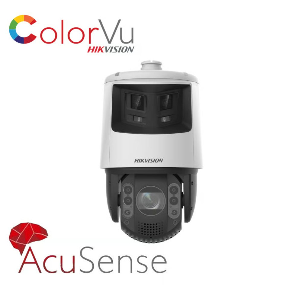 Hikvision DS-2SE7C432MWG-EB/26(F0) TandemVu H265 PoE IP Dual-Channel (6MP 180° Panoramic Channel + 4MP 32x Optical Zoom PTZ Channel) Dual-Light (30m White-Light + 200m IR Light) Weatherproof Smart-Linkage Tracking PTZ (Pan Tilt Zoom) Camera – ColorVu + AcuSense Technology