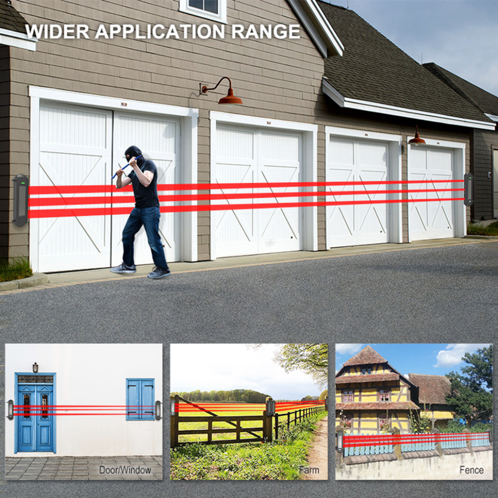 - 100m Sensor Detection Range: The solar beam sensors work in pair (one is transmitter, the other one is receiver), the infrared detection range of the solar beam sensors up to 100 meters, it means the infrared sensing terminals can be mounted up to 100 meters apart.