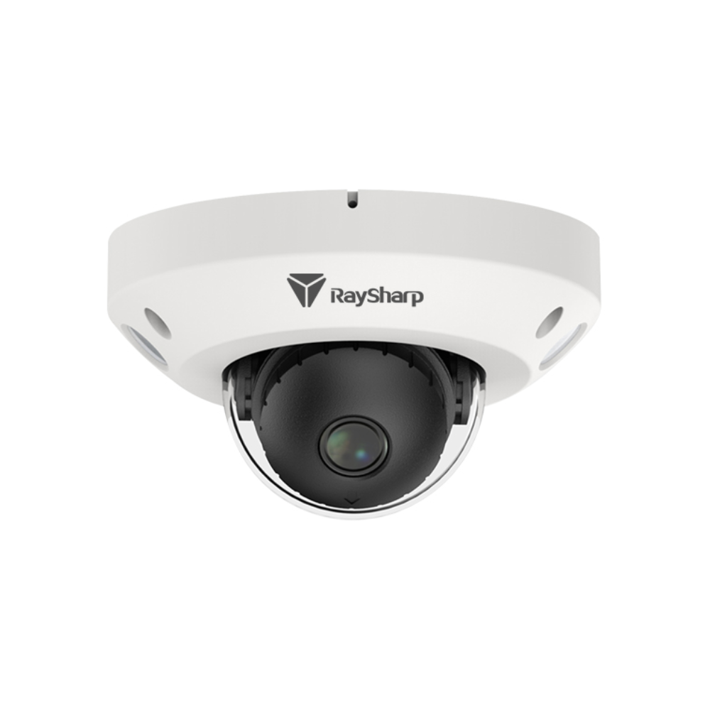 Raysharp RS-CH456M4CB-LW28PW-M AI Lite Series H265 5MP PoE IP IR (20m) 120dB True-WDR Weatherproof Vandalproof Mini Dome (Wedge / Hockeypuck) Camera with 2.8mm Fixed Lens – Built-in Mic
