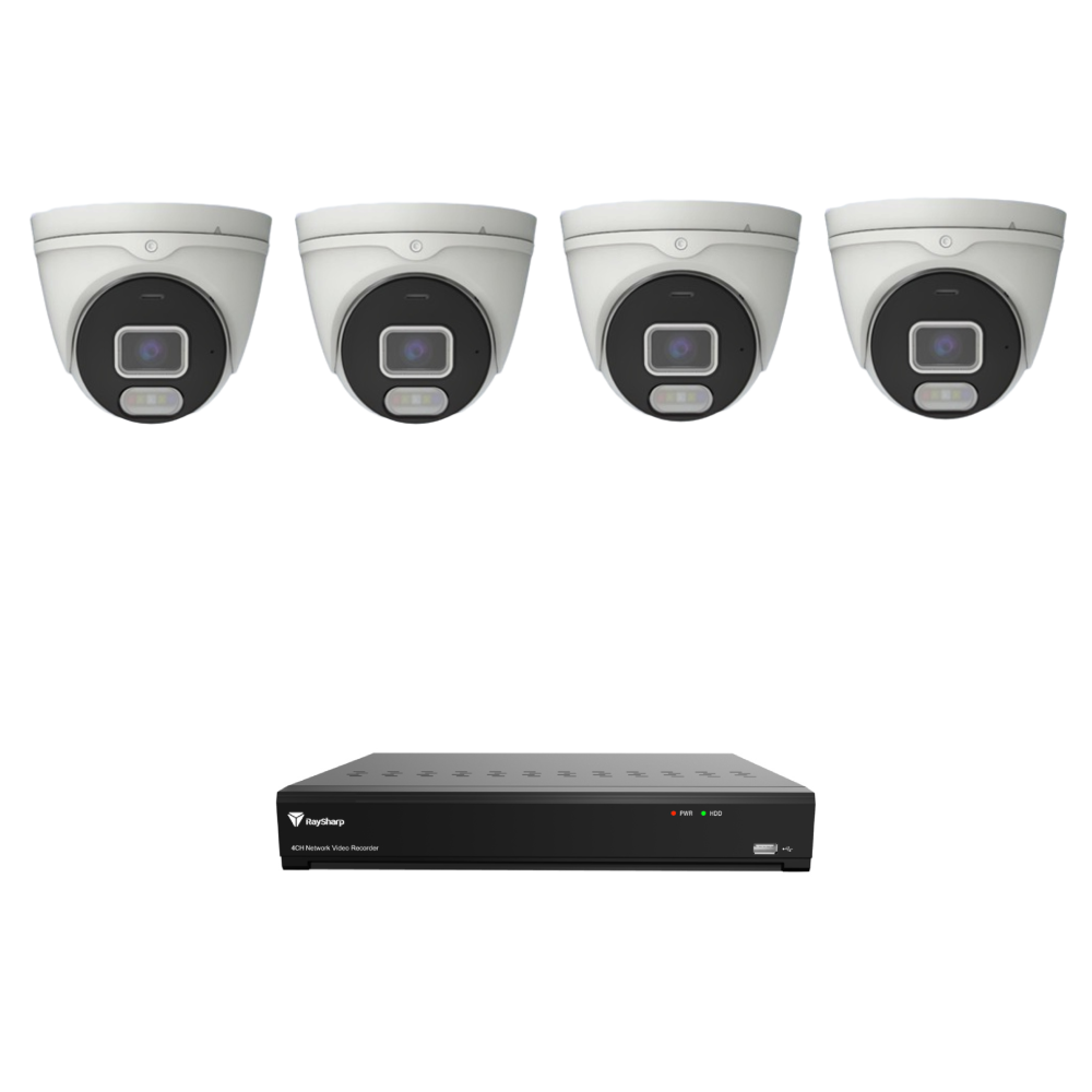Raysharp RS5MPIPCCTVKIT2 5MP IP CCTV Kit # 2 with 1 * RS-N2104HR-PR 4-CH NVR (without HDD) + 4 * RS-CH356M4MJG-HALTF-LFW28PW 5MP All-in-One IP Turret Cameras