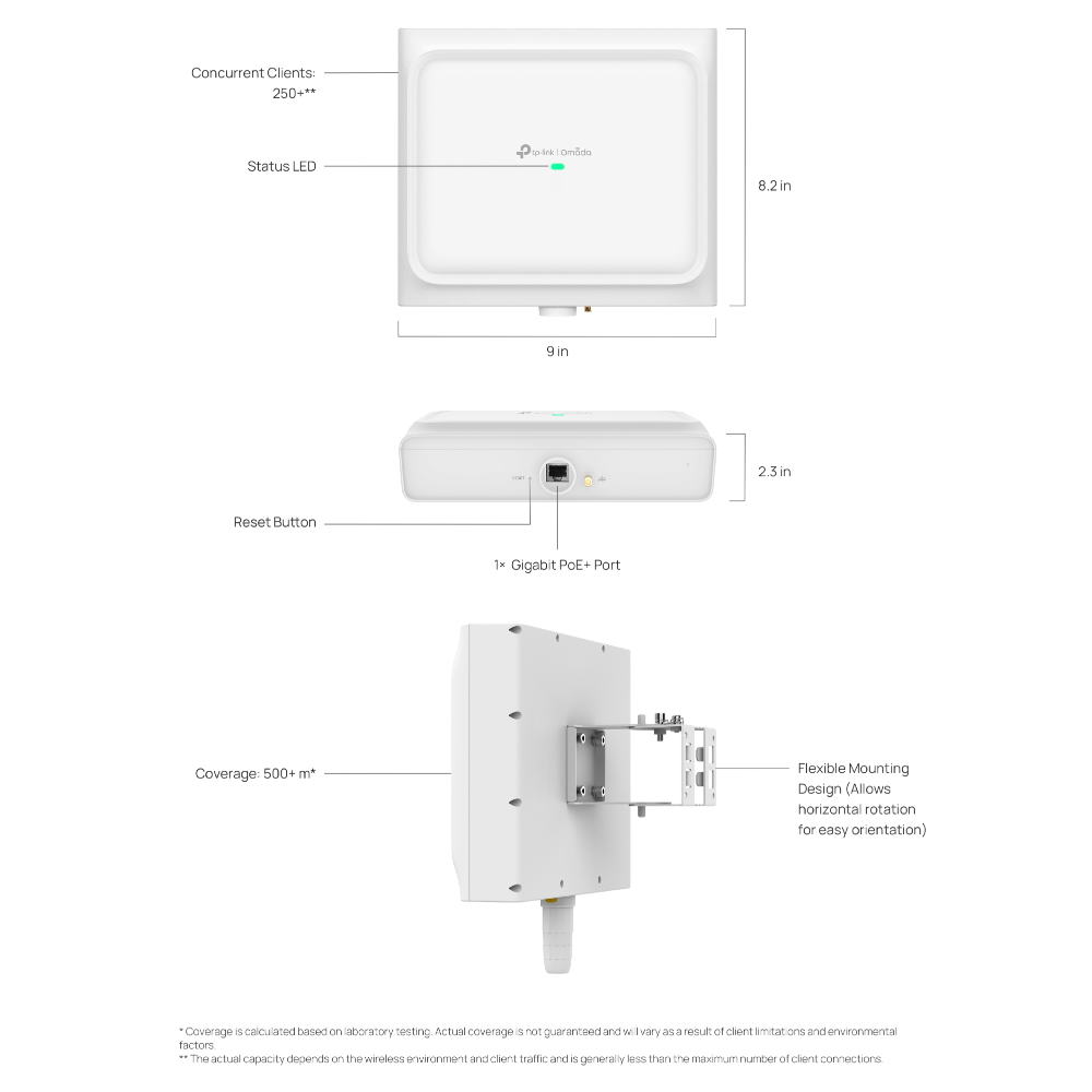 - Flexible Deployment: Supports 802.3at PoE and Omada Mesh technology.