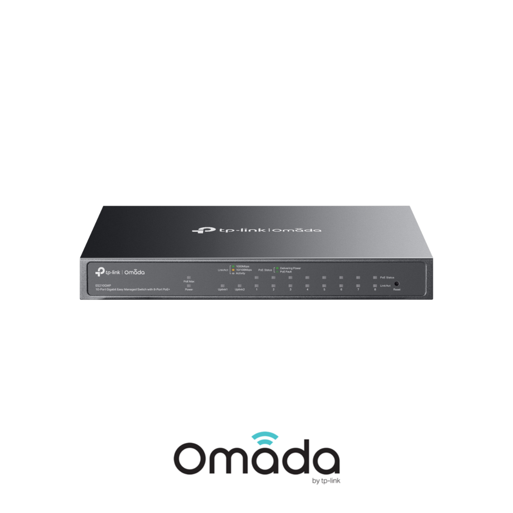 TP-Link Omada ES210GMP 10-Port Gigabit Ethernet Easy Managed Network Switch with 8 * PoE+ Ports + 1 * GbE LAN Port + 1 * Gb RJ45 / SFP Combo Port – 123w PoE Power Output – Centralized Cloud Management Via Web OR Omada App