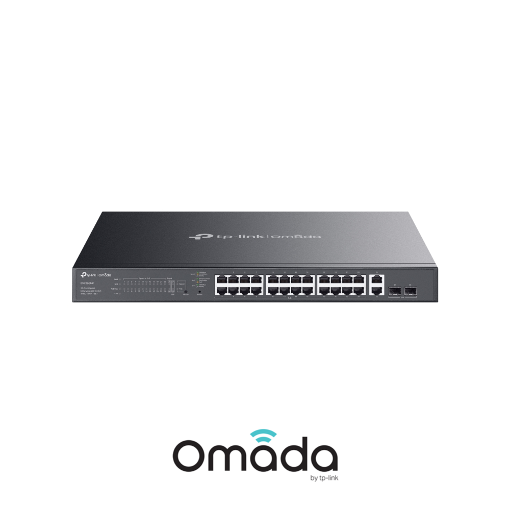 TP-Link Omada ES228GMP 28-Port Gigabit Ethernet Easy Managed Network Switch with 24 * GbE PoE+ Ports + 2 * GbE LAN Ports + 2 * SFP Slots – 384w PoE Power Output – Centralized Cloud Management Via Web OR Omada App