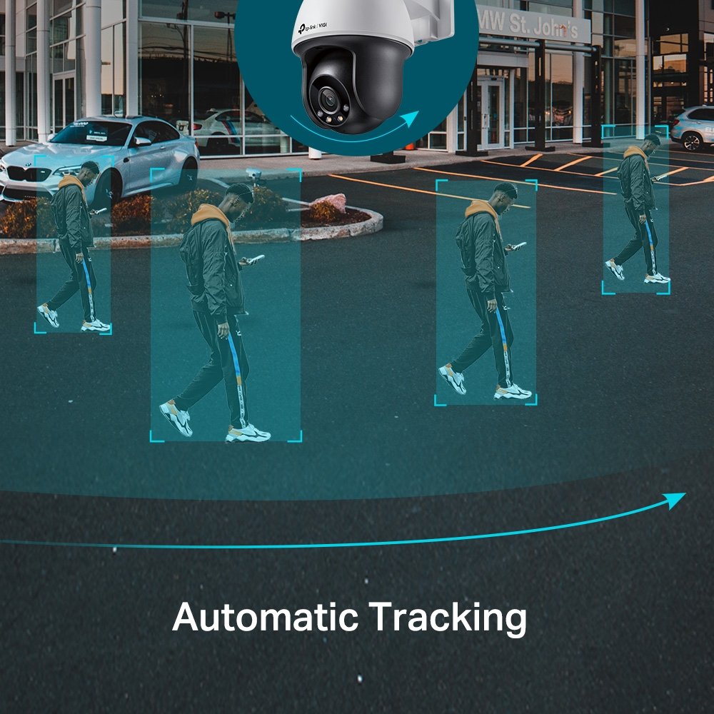 TP-Link VIGI C540S EasyCam VIGI ColorPro 4MP AI Smart-Dual-Light (30m IR + 30m White-Light) Full-Colour Ultra-Low-Light PoE IP Weatherproof PT (Pan + Tilt) Auto-Tracking Camera with 4mm Fixed Lens – 2-Way Audio + Active-Deterrence