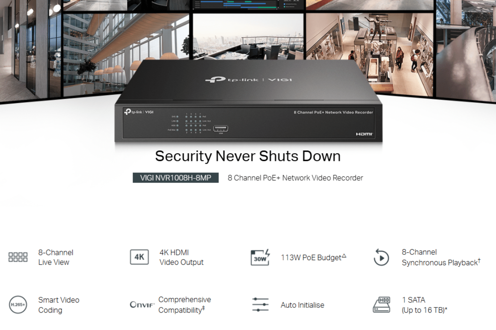 - 1 * VIGI NVR1008H-8MP 4K Mini 1U 8-Channel 8* PoE NVR – Without HDD
