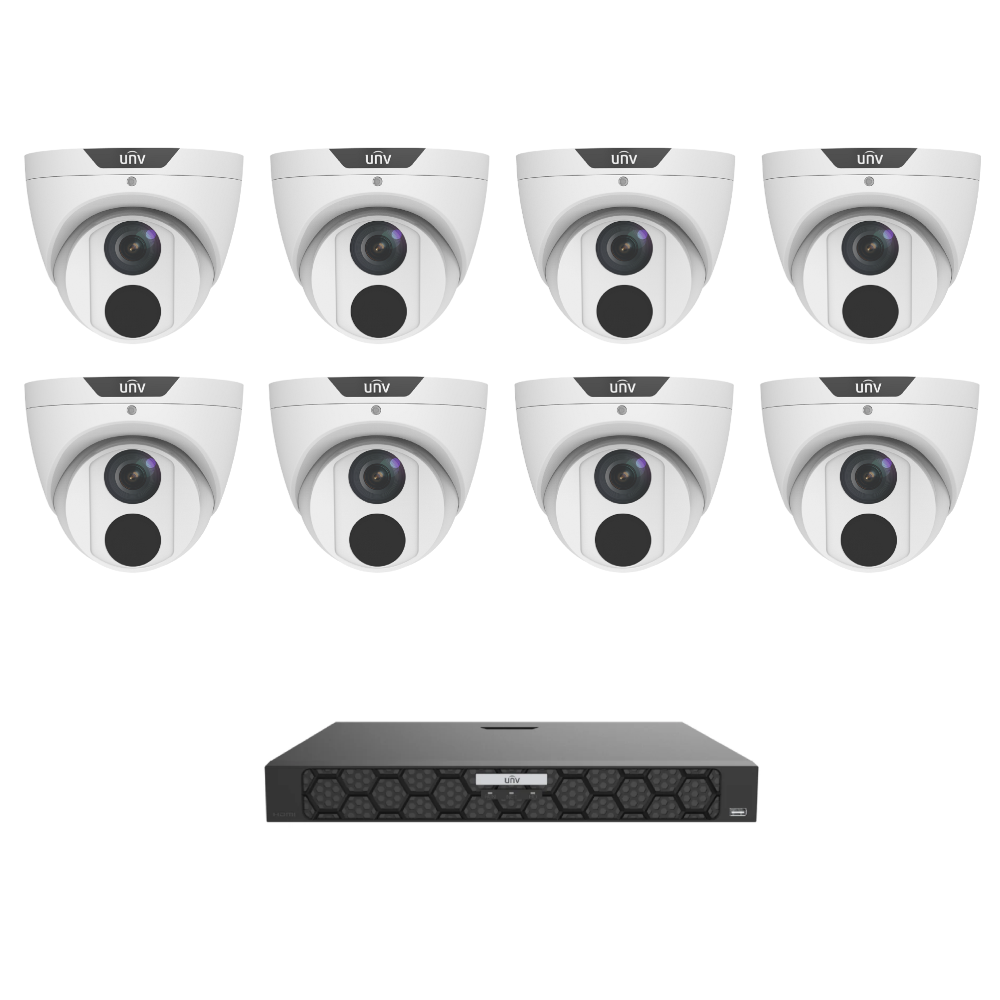 Uniview UNV6MPIPKIT4-L EasyStar 6MP IP CCTV Kit Includes 1 * NVR502-16B-P16-IQ AI NVR (Without HDD) + 8 * IPC3616LE-ADF28KM-G EasyStar 6MP IP Turret Cameras