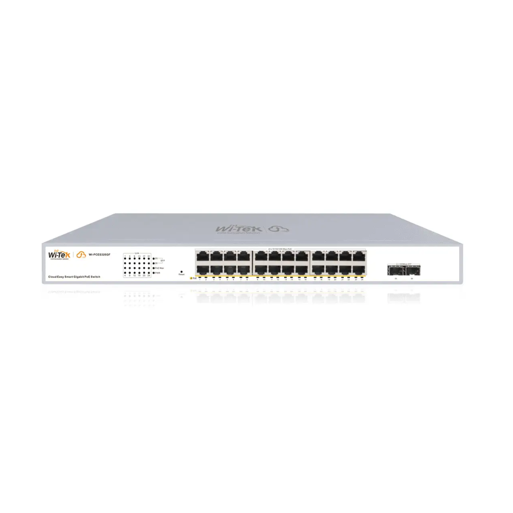 Wi-Tek WI-PCES326GF(V2) 1U Rackmount Full-Gigabit Network PoE Switch with 24 * GbE PoE Ports + 2 * SFP Ports – 370W PoE Power – Can be Cloud Managed on Wi-Tek Cloud Platform